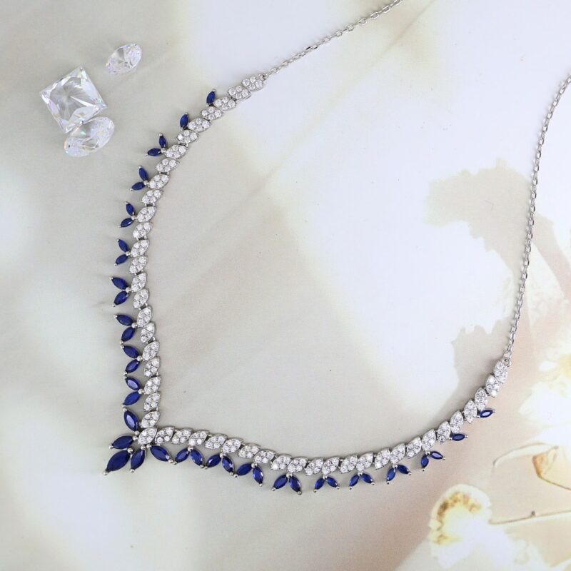 DREAMY DAZZLE BLUE V STYLE NECKLACE SET