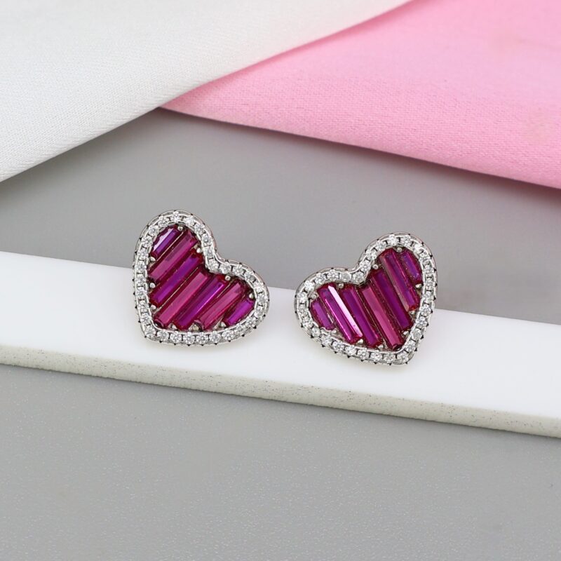 BAGUETTE RUBY HEART STUDDS