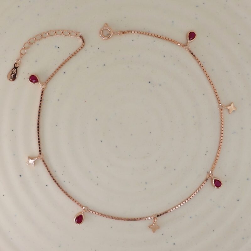DROPLET WITH STAR CHARM ANKLET PAIR (ROSE)