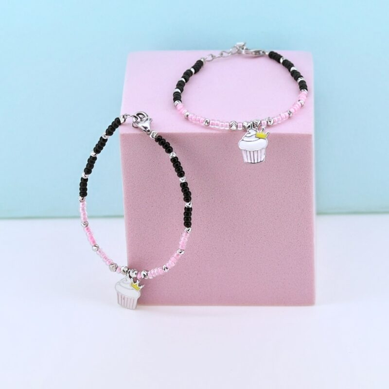 CUPCAKE WITH DUAL COLOUR BEADS KIDS BRACELET PAIR