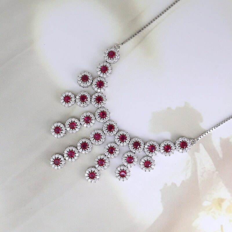 DAZZLING CIRCLE NECKLACE SET (PINK)