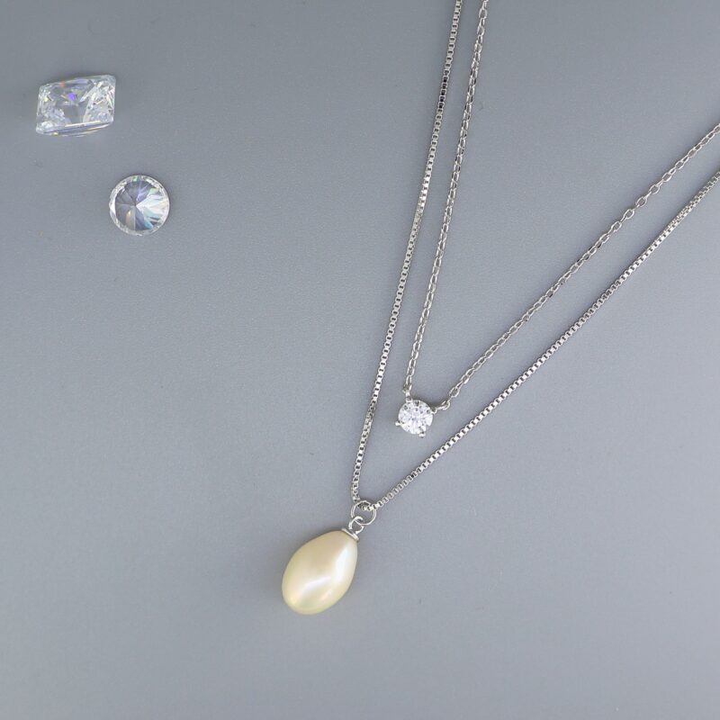 DUAL LAYER DAINTY PEARL WITH STONE NECKLACE