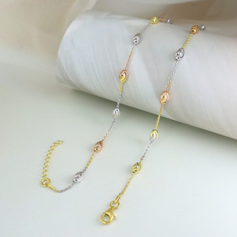 SILVER BEADES ANKLET PAIR (3 TONE)