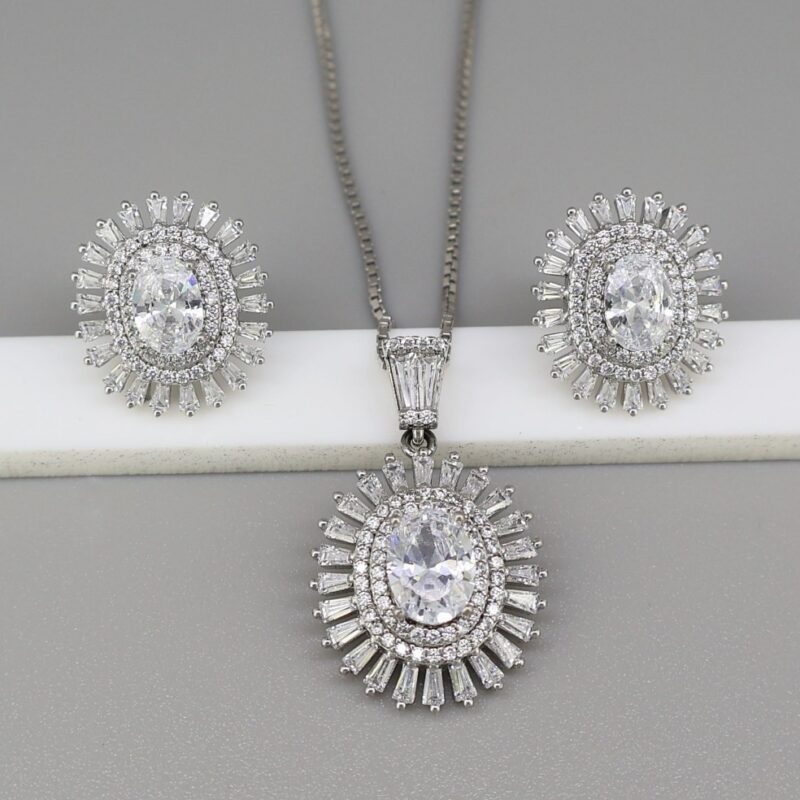 FLOWER WITH OVAL HANGING NECKLACE SET